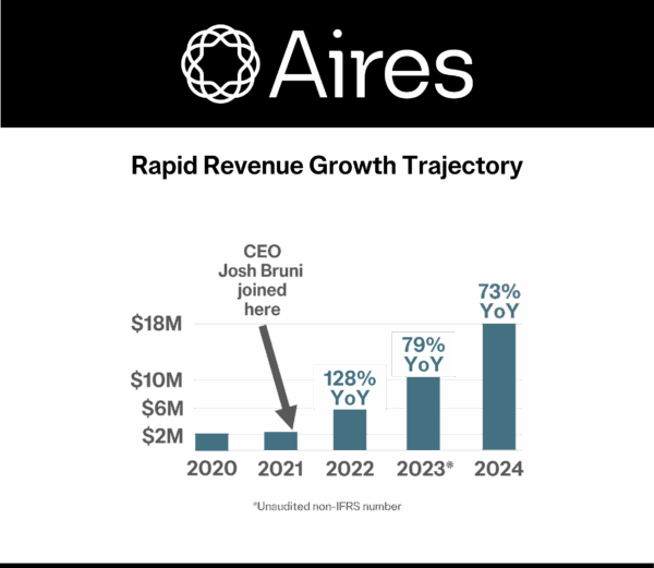 The biggest driver behind Aires’ 7x growth is CEO Josh Bruni, a proven marketing and brand-growth genius who has led growth for top consumer brands over the past 20+ years.